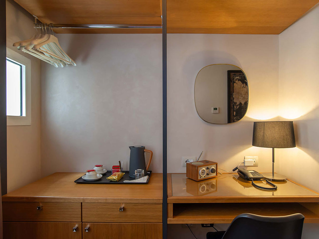 Las habitaciones han sido recientemente renovadas para ofrecer un ambiente moderno y funcional. Pequeñas y minimalistas, están amuebladas con elegancia y atención al detalle, con papeles pintados de diseño que crean un ambiente acogedor y cálido.